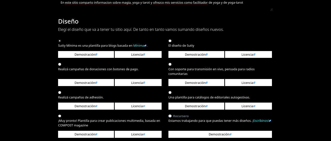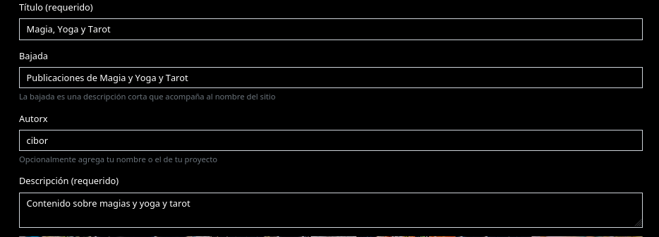 With the site description, describe your site’s purpose in a few lines or what your readers can expect. What you fill in here will be used as a description in search engines (such as Google and DuckDuckGo). For example: “Sutty account in the Fediverse to share articles automatically”. You can always edit this later in the site’s configuration panel.